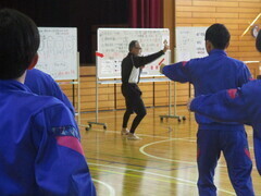 「生徒は、とても聞く態度がよく、熱心に取り組んでいる」とお褒めの言葉をいただきました。また、生徒の反応がよく、来てよかったと感想を述べられました。