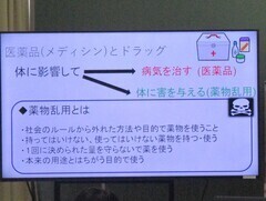 生徒は、薬物乱用はとても危険だと改めて思った、市販の薬でも飲みすぎると副作用があるので気を付けたい、などの感想をもち、薬物に対する認識を深めていました。