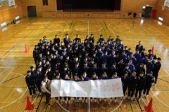 そう書かれた横断幕の文字一つ一つが生徒の温かいメッセージカードでできています。読んでいると心も温かくなります。