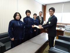 1月16日の昼休みに、2年生の文化祭実行委員3名から上越市社会福祉協議会浦川原支所長様へ直接お渡ししました。「地域の福祉のために大切に活用させていただきます。」と感謝の言葉をいただきました。